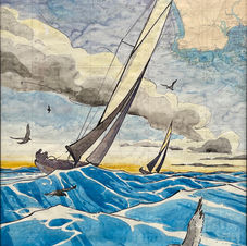 42x42 cm sans cadre, encres. Sur carte de géographie. Ketch